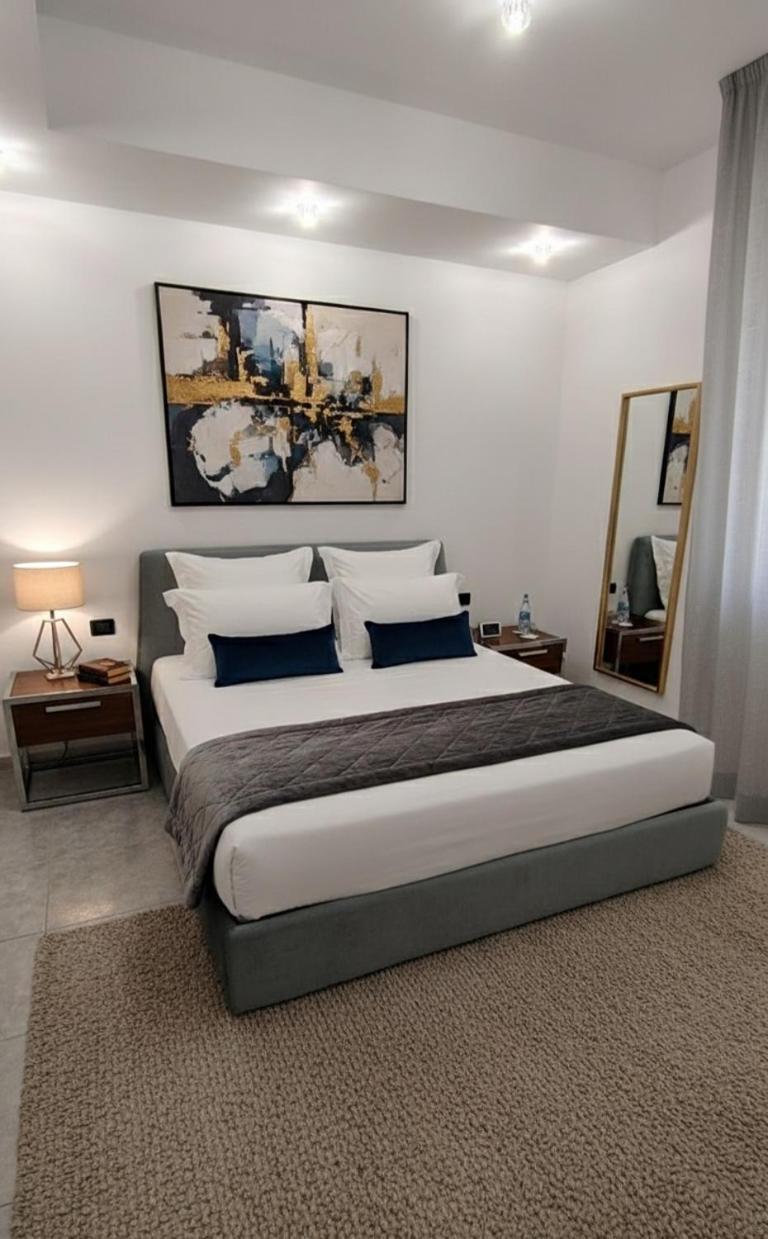 Camera Matrimoniale Deluxe con Balcone. Questa camera matrimoniale presenta un bagno privato con doccia, bidet, asciugacapelli,di cortesia e accappatoi. Questa camera matrimoniale comprende aria condizionata, armadio, terrazza e balcone. L’alloggio dispone di 1 letto.