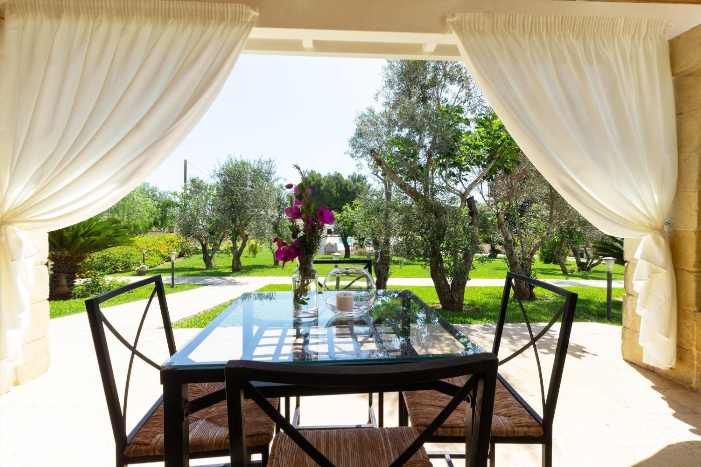 Camera Quadrupla. This quadruple room provides a pool with a view. Guests will find a stovetop, a refrigerator, kitchenware and a tea and coffee maker in the well-equipped kitchen. The quadruple room also provides guests with a barbecue. This air-conditioned quadruple room includes a flat-screen TV with cable channels, a private bathroom as well as a terrace with garden views. The unit offers 2 beds. ;