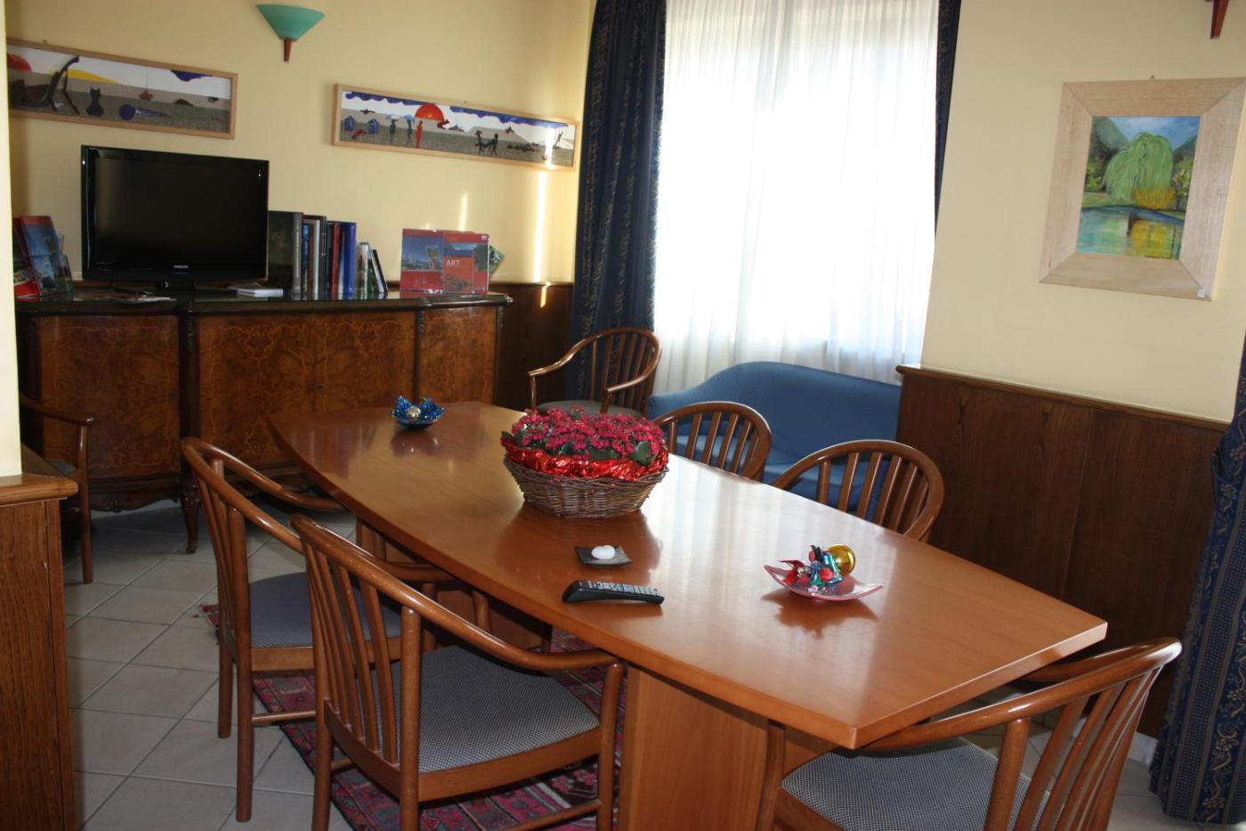 2 Camere Comunicanti. Composed of 2 connecting rooms, each with its own TV. Offers a balcony overlooking the Alps. Please specify bed preference when booking.