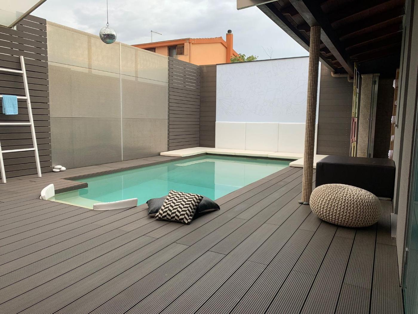 Casa con 2 Camere da Letto. This holiday homes standout features are the private pool and hot tub. The holiday homes kitchen, which features an oven, is available for cooking and storing food. The air-conditioned holiday home provides a flat-screen TV with cable channels, a washing machine, a seating area, a wardrobe as well as garden views. The unit offers 3 beds.