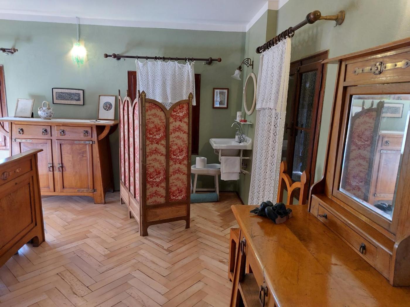 Camera Matrimoniale con Bagno in Comune. Featuring free toiletries, this double room includes a private bathroom with a shower, a bidet and a hairdryer. The double room has parquet floors and features air conditioning, heating and garden views. The unit has 2 beds. ;