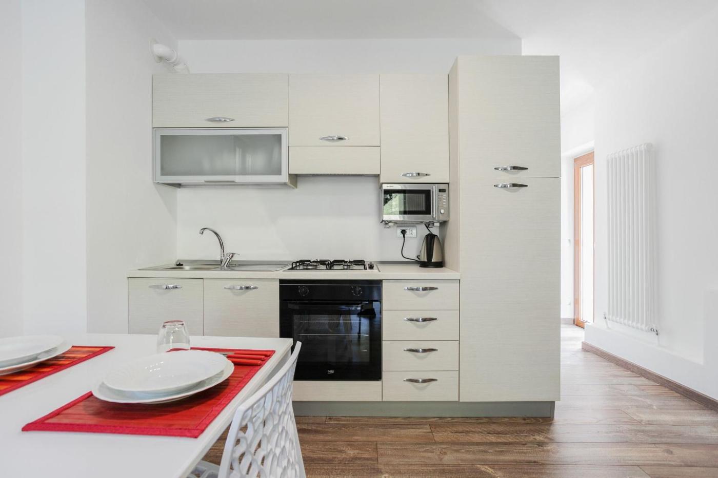 Appartamento 1. This spacious apartment includes 1 living room, 1 separate bedroom and 1 bathroom with a shower and a bidet. The well-equipped kitchen has a stovetop, a refrigerator, an oven and a microwave. Among the room amenities are a washing machine, a coffee machine, heating as well as a patio and lake views. The unit has 2 beds.