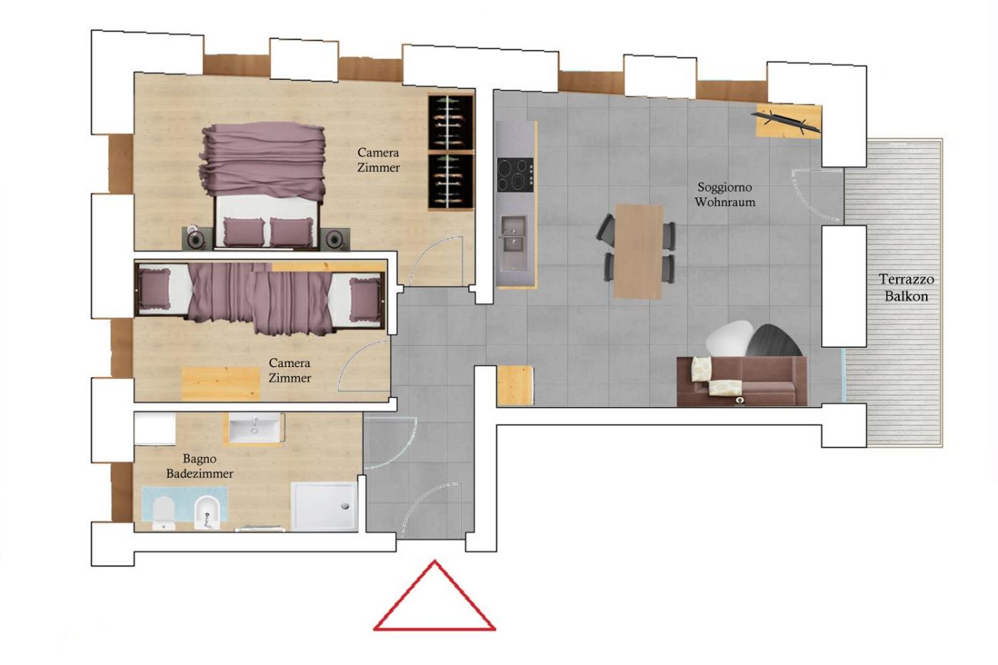 Appartamento Deluxe con 2 Camere da Letto e Balcone. This spacious apartment is comprised of 1 living room, 2 separate bedrooms and 1 bathroom with a shower and a bidet. The well-equipped kitchen features a stovetop, a refrigerator, a dishwasher and kitchenware. Featuring a terrace with mountain views, this apartment also offers a private entrance and a flat-screen TV. The unit offers 4 beds.