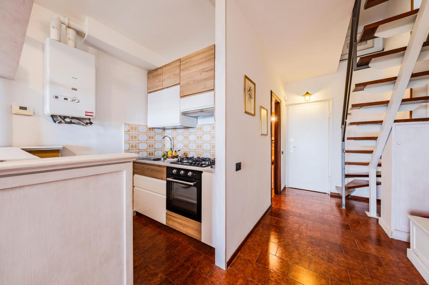 Questo appartamento con aria condizionata comprende 1 camera da letto, un soggiorno, un angolo cottura con utensili, frigorifero e macchina da caffè, e 1 bagno con bidet e doccia. Tra i servizi disponibili troverete una TV a schermo piatto.