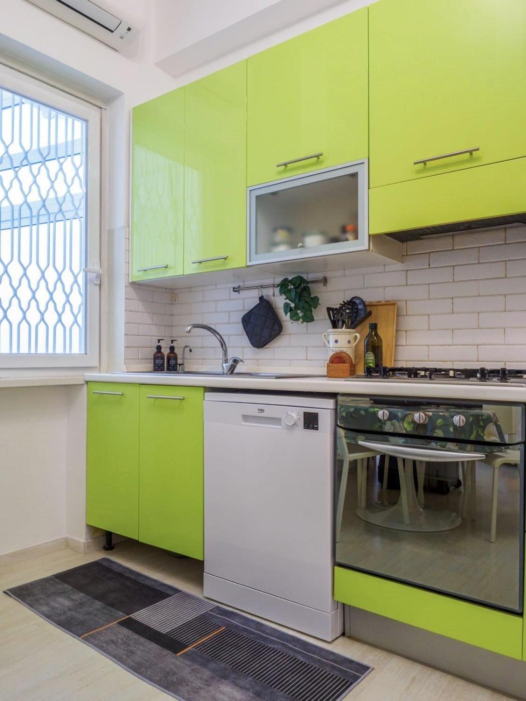 Appartamento con 3 Camere da Letto. This spacious apartment is comprised of 1 living room, 2 separate bedrooms and 1 bathroom with a shower and free toiletries. The well-equipped kitchen features a stovetop, a refrigerator, a dishwasher and kitchenware. The air-conditioned apartment offers a flat-screen TV with streaming services, a washing machine, a coffee machine, a wardrobe as well as ancourtyard view. The unit offers 4 beds.