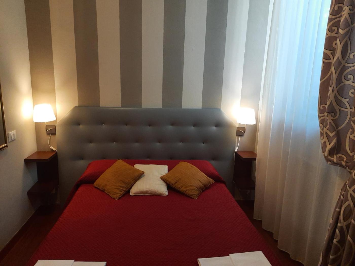 Camera Matrimoniale Piccola con Vista Giardino - Piano Terra. Camera matrimoniale con bagno privato dotato didi cortesia, doccia e asciugacapelli. Le camere ai piani superiori sono accessibili tramite ascensore. Lalloggio dispone di 1 letto.