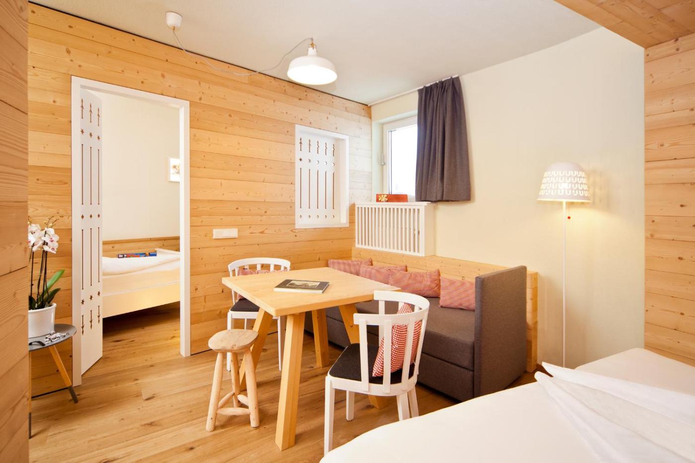 Suite Familiare. Offering free toiletries and bathrobes, this family room includes a private bathroom with a bath or a shower and a hairdryer. The family room offers a wardrobe, a safe deposit box, a sofa, a flat-screen TV with cable channels, as well as mountain views. The unit offers 4 beds.