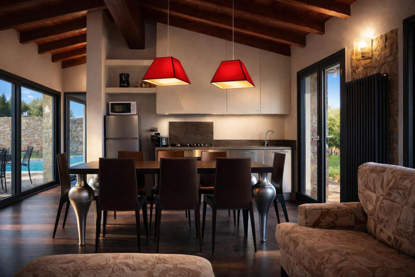 Villa con Piscina Privata. The private pool and fireplace are the standout features of this villa. This spacious villa comes with 3 bedrooms, a kitchen and 3 bathrooms with a shower and a hairdryer. Guests will find a refrigerator, a dishwasher, kitchenware and an oven in the well-fitted kitchen. The villa also includes a barbecue. The air-conditioned villa features a TV, a washing machine, a tea and coffee maker and a safe deposit box. The unit has 3 beds.