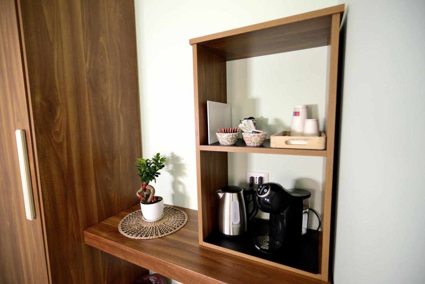 Camera King Deluxe. Providing free toiletries and bathrobes, this double room includes a private bathroom with a shower, a bidet and a hairdryer. The air-conditioned double room provides a flat-screen TV with streaming services, a private entrance, a tea and coffee maker, a wardrobe as well as city views. The unit offers 2 beds.