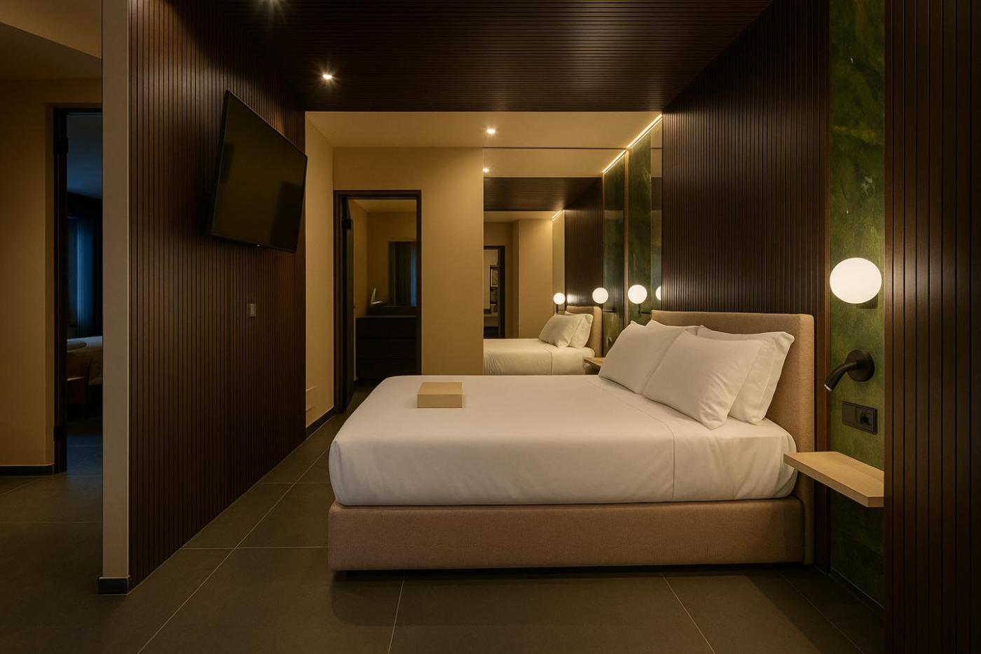 Tutti gli alloggi hanno un’area salotto, una TV a schermo piatto con canali satellitari e un bagno privato dotato didi cortesia, bidet, doccia e vasca idromassaggio. Alcune unità presentano una terrazza eo un balcone con vista sul mare o sulla montagna.