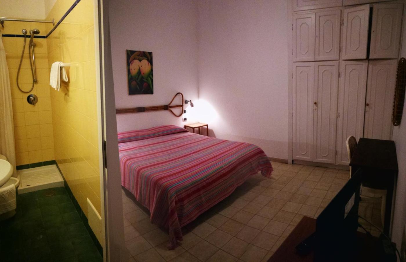 Camera Matrimoniale con Vista Mare. Camera matrimoniale dotata di bagno privato con doccia, asciugacapelli, bidet edi cortesia. Questa camera matrimoniale con pavimento piastrellato presenta ambienti climatizzati, la vista sul mare, una TV satellitare a schermo piatto, un armadio e il riscaldamento. L’alloggio dispone di 1 letto.