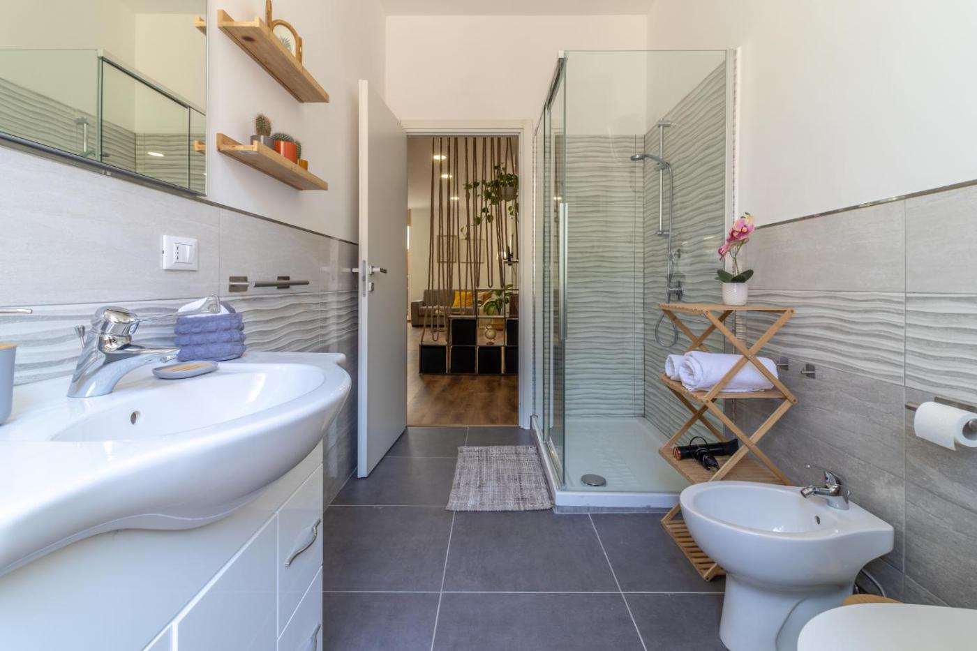 Appartamento con 1 Camera da Letto. This spacious apartment consists of 1 living room, 1 separate bedroom and 1 bathroom with a shower and free toiletries. Guests can make meals in the kitchen that is equipped with a stovetop, a refrigerator, kitchenware and an oven. This air-conditioned apartment comes with a dining area, a flat-screen TV with streaming services a washing machine and a terrace. The unit offers 3 beds.