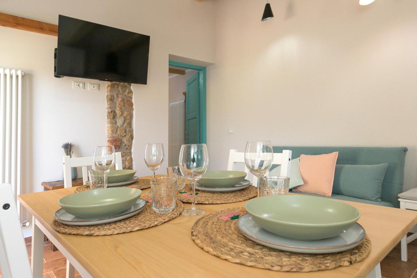 Questo agriturismo con aria condizionata comprende 1 camera da letto, un soggiorno, una cucina con utensili, lavastoviglie e macchina da caffè, e 1 bagno con doccia edi cortesia. Presso questo agriturismo troverete asciugamani e lenzuola a disposizione.