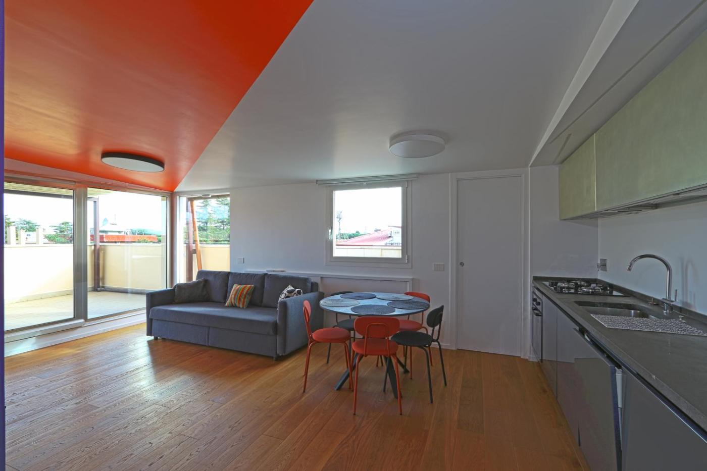 Appartamento con Terrazza. This spacious apartment includes 1 living room, 2 separate bedrooms and 2 bathrooms with a walk-in shower and bathrobes. In the kitchenette, guests will find a stovetop, a refrigerator, a dishwasher and kitchenware. This air-conditioned apartment features a dining area, a flat-screen TV with streaming services a washing machine and a terrace. The unit has 3 beds.