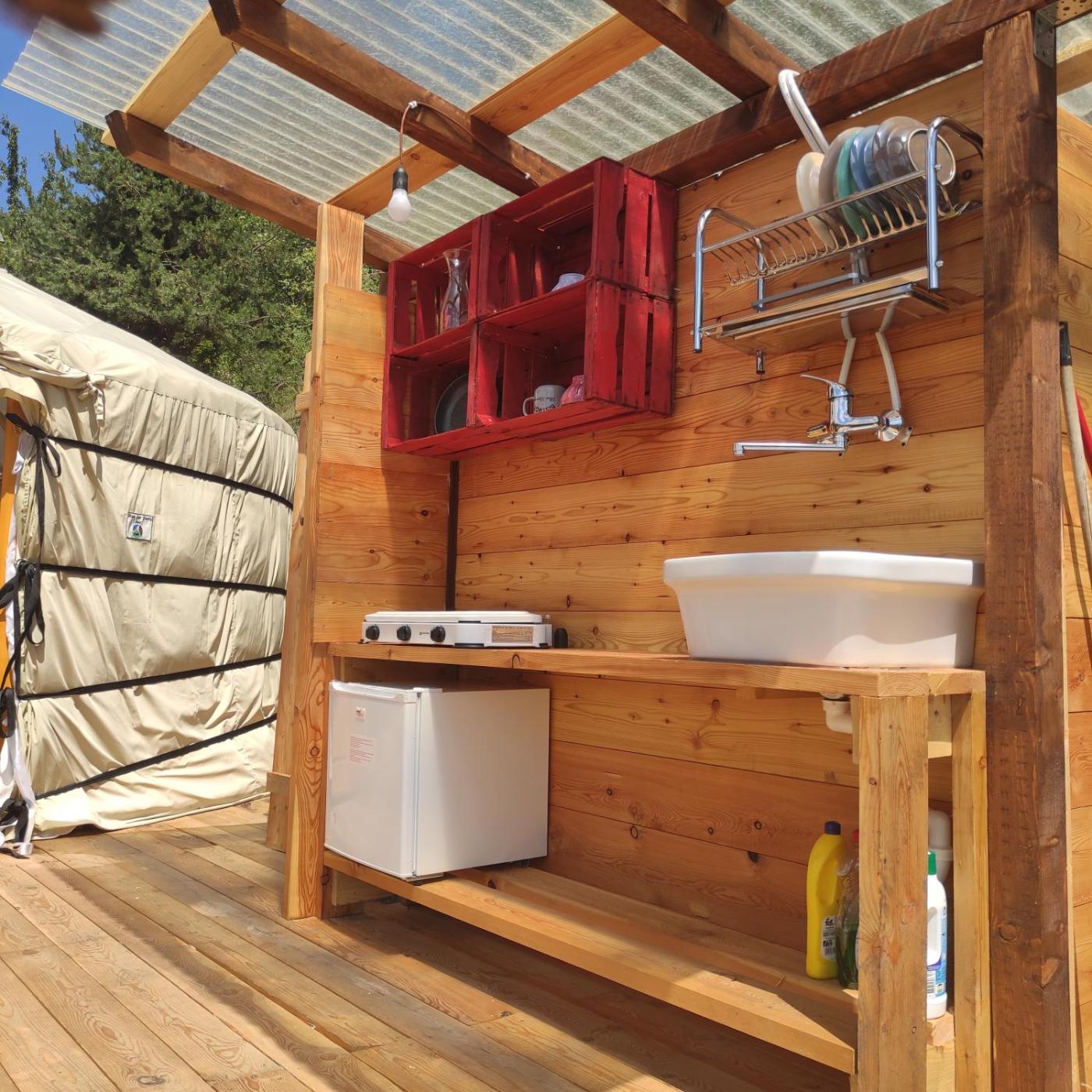 Tenda Yurt. The tent provides a barbecue, a sofa, a balcony with garden views as well as a private bathroom featuring a shower. The unit offers 3 beds.