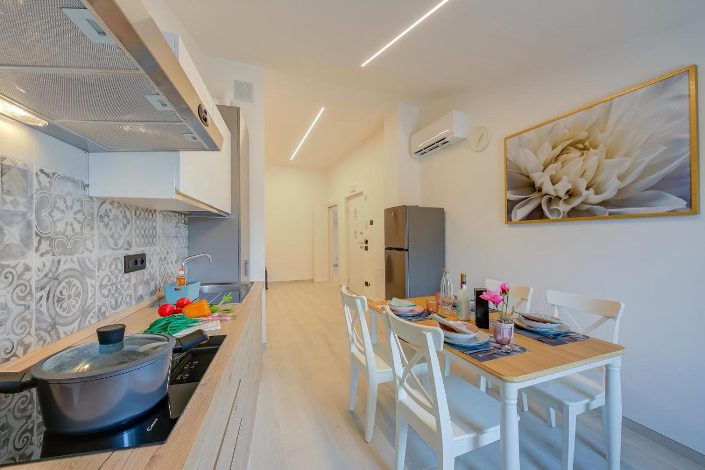 Appartamento con 2 Camere da Letto. This spacious apartment features a kitchen, a seating area, 2 separate bedrooms and 1 bathroom with a shower and a bidet. Guests can make meals in the kitchen that has a stovetop, a refrigerator, a dishwasher and kitchenware. The apartment features air conditioning, a washing machine, a coffee machine, a dining area, as well as a flat-screen TV. The unit has 2 beds.