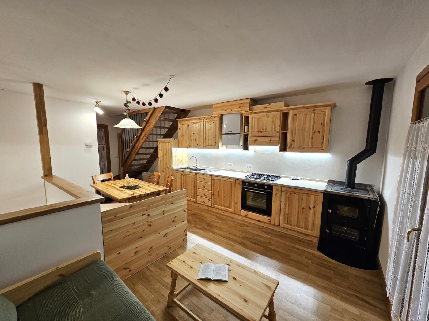 Casa con 2 Camere da Letto. This holiday home features a fireplace. Boasting a private entrance, this holiday home features 1 living room, 2 separate bedrooms and 2 bathrooms with a bath or a shower and a bidet. The well-fitted kitchen has a refrigerator, kitchenware and an oven. The holiday home features a washing machine, a seating area, a dining area as well as a terrace with mountain views. The unit has 6 beds.