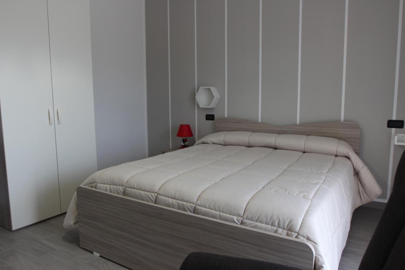 Camera King. Camera matrimoniale dotata di aria condizionata, ingresso indipendente, balcone con vista sul giardino e bagno privato munito di doccia. L’alloggio presenta 1 letto.