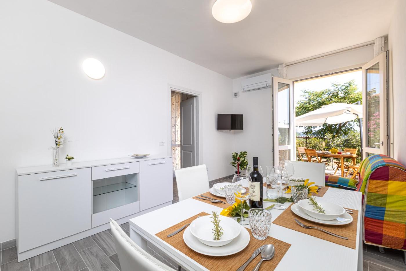 Appartamento Deluxe. The pool with a view is a top feature of this apartment. Boasting a private entrance, this air-conditioned apartment comes with 1 living room, 1 separate bedroom and 1 bathroom with a shower and a bidet. Guests will find a stovetop, a refrigerator, a dishwasher and kitchenware in the well-fitted kitchen. The apartment also includes a barbecue. Featuring a terrace with garden views, this apartment also features a washing machine and a flat-screen TV with streaming services. The unit has 2 beds.