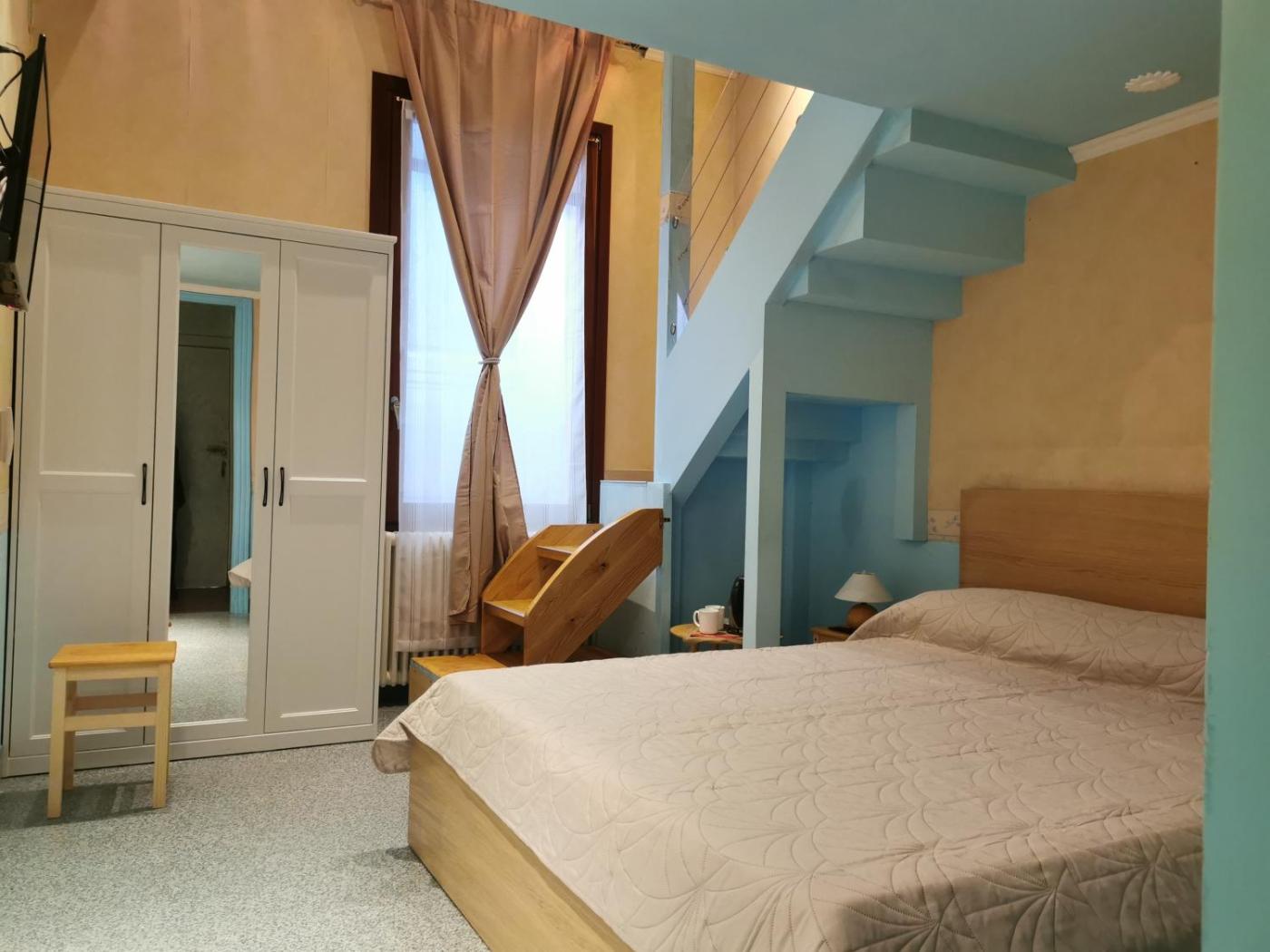 Camera Matrimoniale Superior su 2 Livelli. Camera su 2 livelli con arredi eleganti e colori pastello. Al piano inferiore troverete una zona notte e un bagno, mentre il piano rialzato ospita 1 letto singolo. Dispone di TV a schermo piatto, aria condizionata e connessione WiFi gratuita. ;