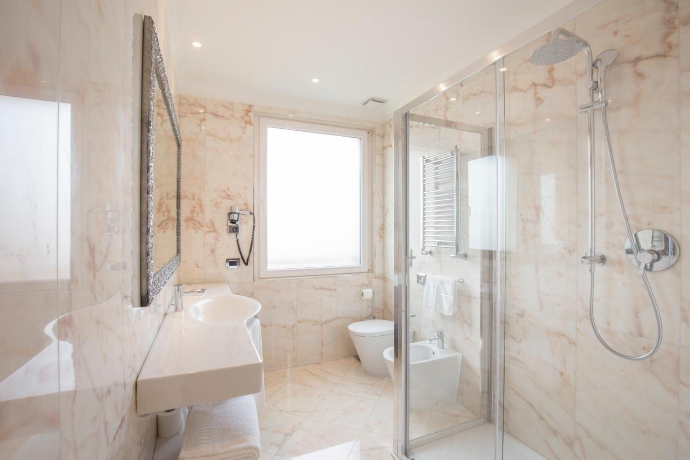Camera Tripla Superior. Camera dotata di TV a schermo piatto con canali satellitari, connessione WiFi gratuita e bollitore con tè e caffè. Il bagno in marmo rosa dispone di asciugacapelli. ;
